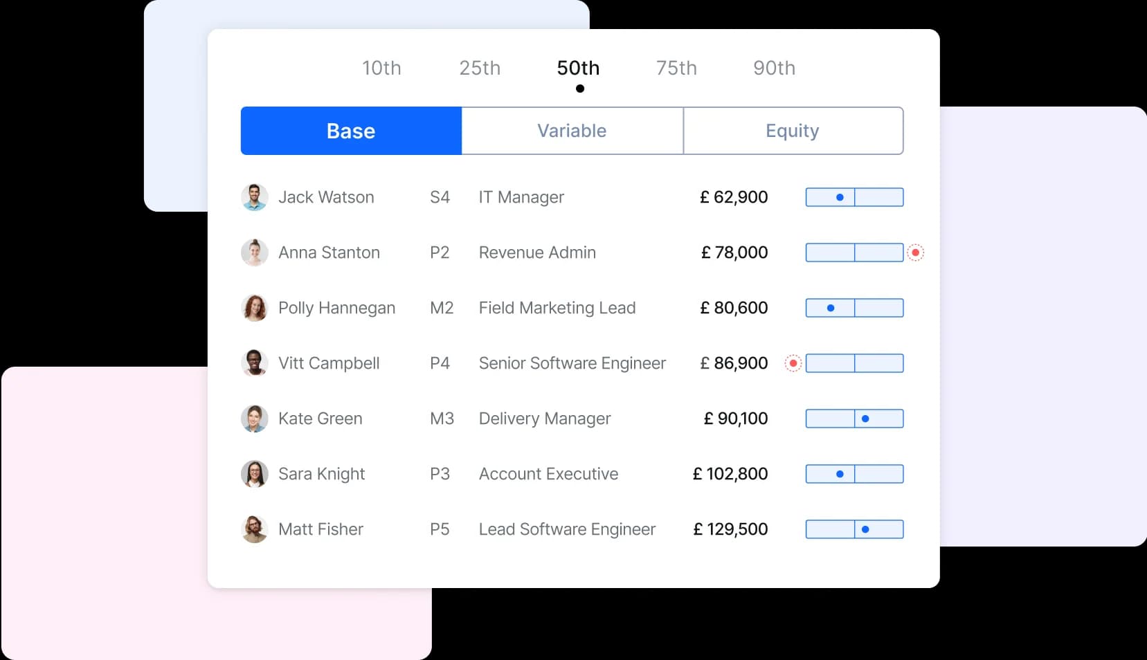Once your employees are levelled, you'll then be able to see your employees benchmarked against our market data.