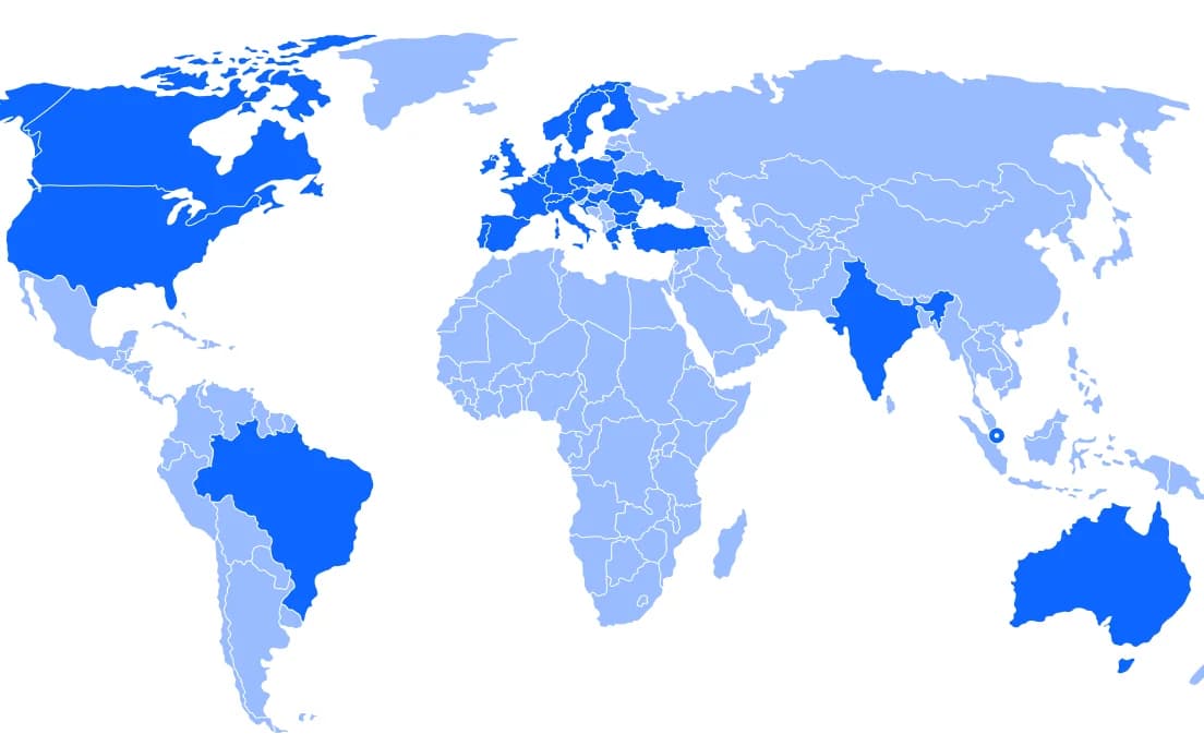 Comprehensive coverage across 48+ countries, from company sizes ranging from startups to global public companies.