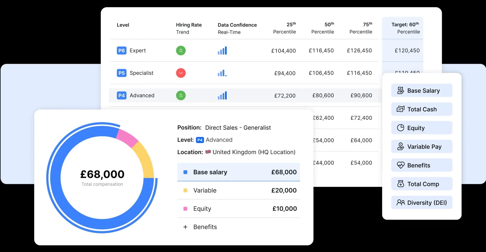 Compare your compensation to live data across salary, equity, variable pay, and benefits - sourced directly from global tech companies like yours.