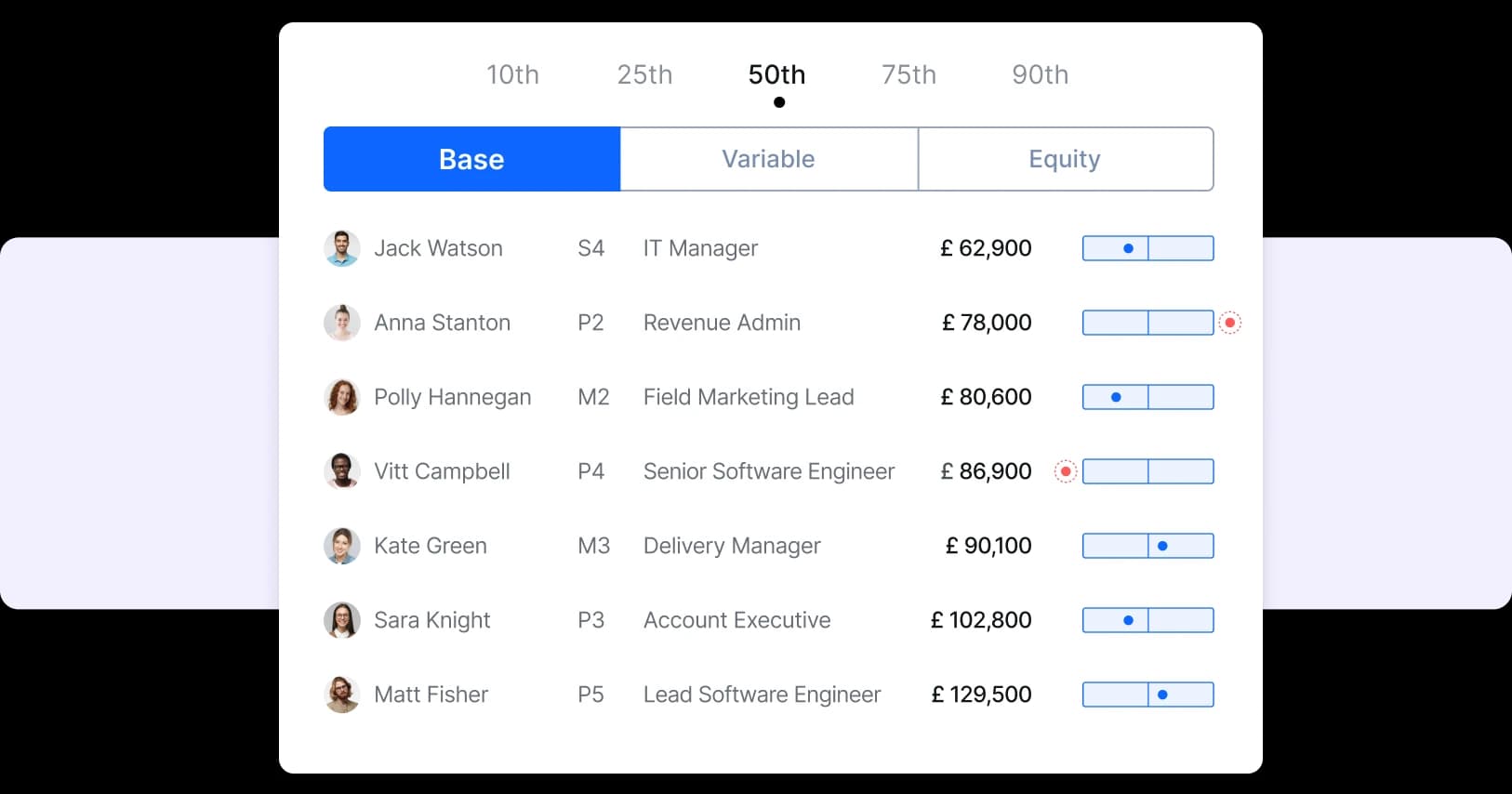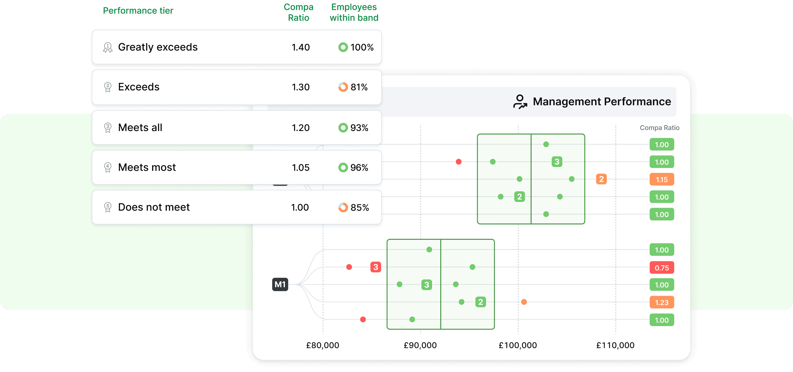 Refresh band ranges to align with current market targets. Speed up the path to fair pay by building different scenarios to stay within budget whilst achieving people objectives.