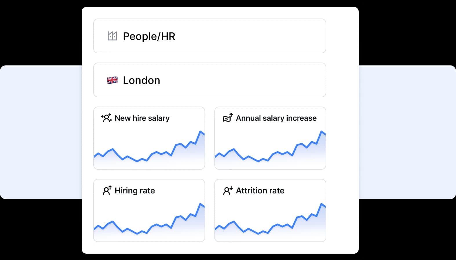 Get insight into market changes, trends, and premiums. Compare your salary increases to relevant industry peers, and identify high demand roles with real-time hiring and attrition rate trends.